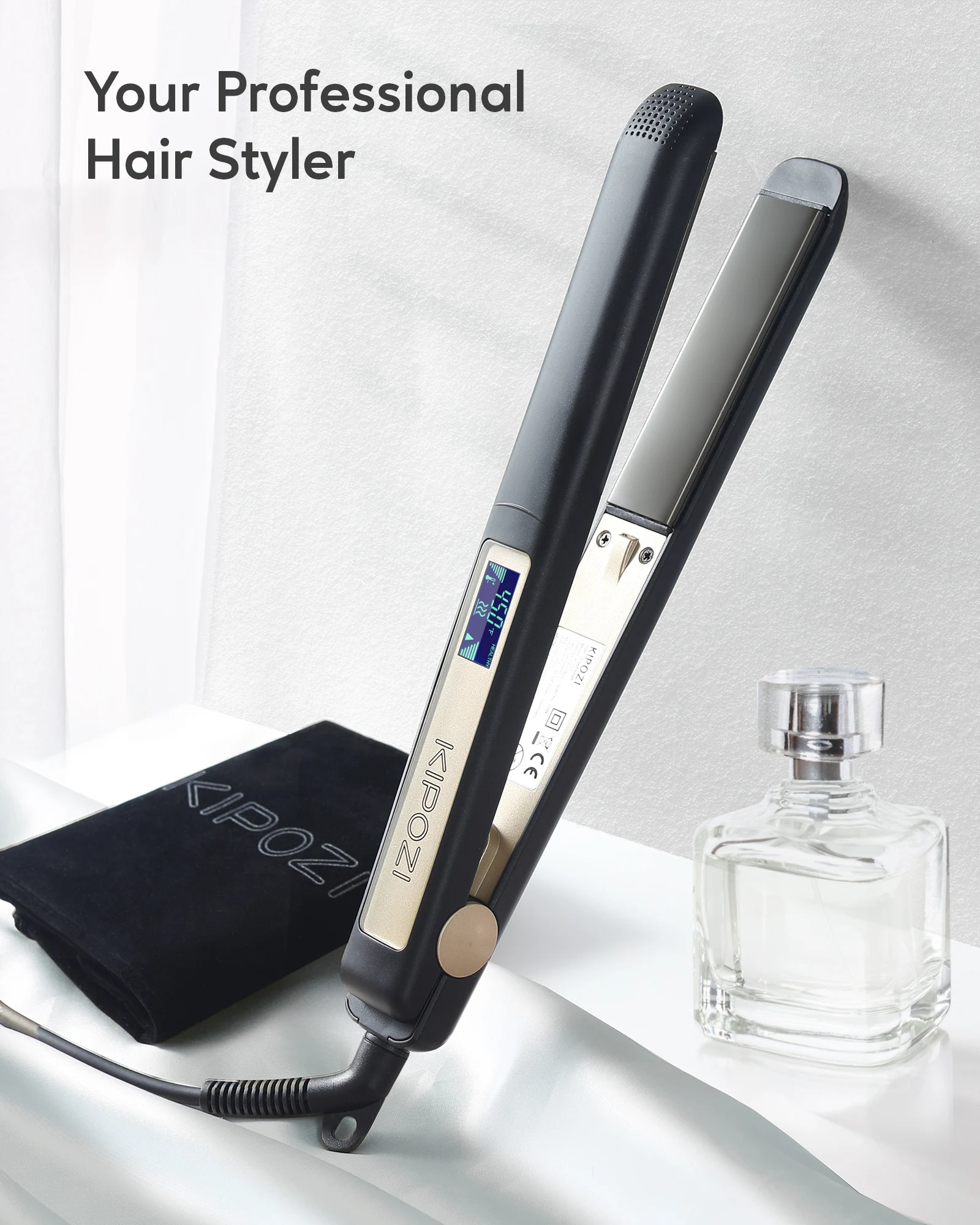Kipozi profissional 1 polegada de ferro plano com titânio 3d placas flutuantes ajuda a reduzir frizz e adicionar brilho.