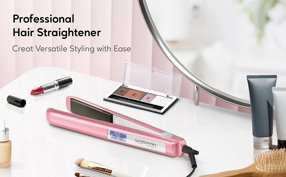=> Obter cabelo brilhante-o ferro liso kipozi vem com placas de revestimento de titânio. As placas de titânio ultra lisas fornecem calor rápido e uniformemente, que tem tecnologia de aumento de brilho e ajuda você a criar o estilo de cabelo mais rápido, com menos frizz e mais brilho. O titânio flat iron ajuda você a obter cabelo sem frizz.